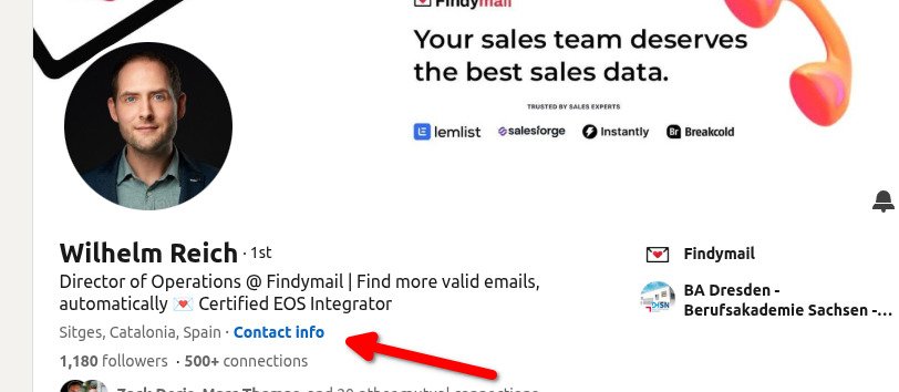 Head to their profile and see if they have a hyperlinked text saying: “Contact info.”
