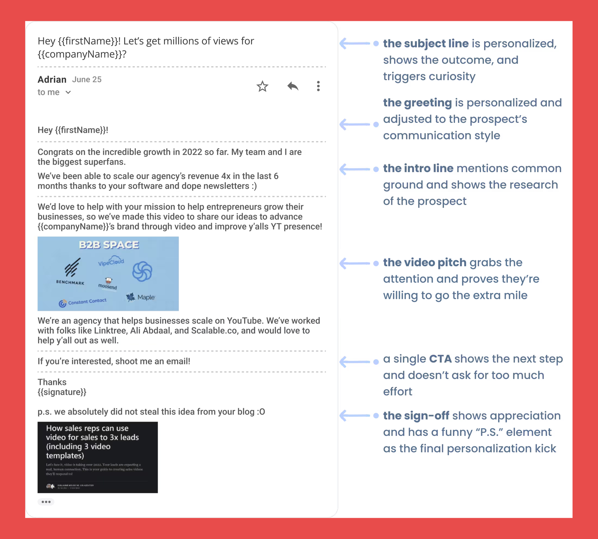 If you pair it with a good subject line, you’ll see way higher click-through and booking rates on your cold emails.