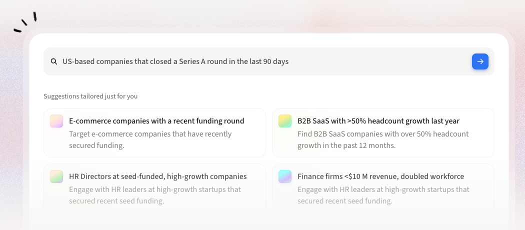 Best for: Sales teams targeting emerging markets, new job functions, or leads with specific buying signals that traditional filters can't capture.