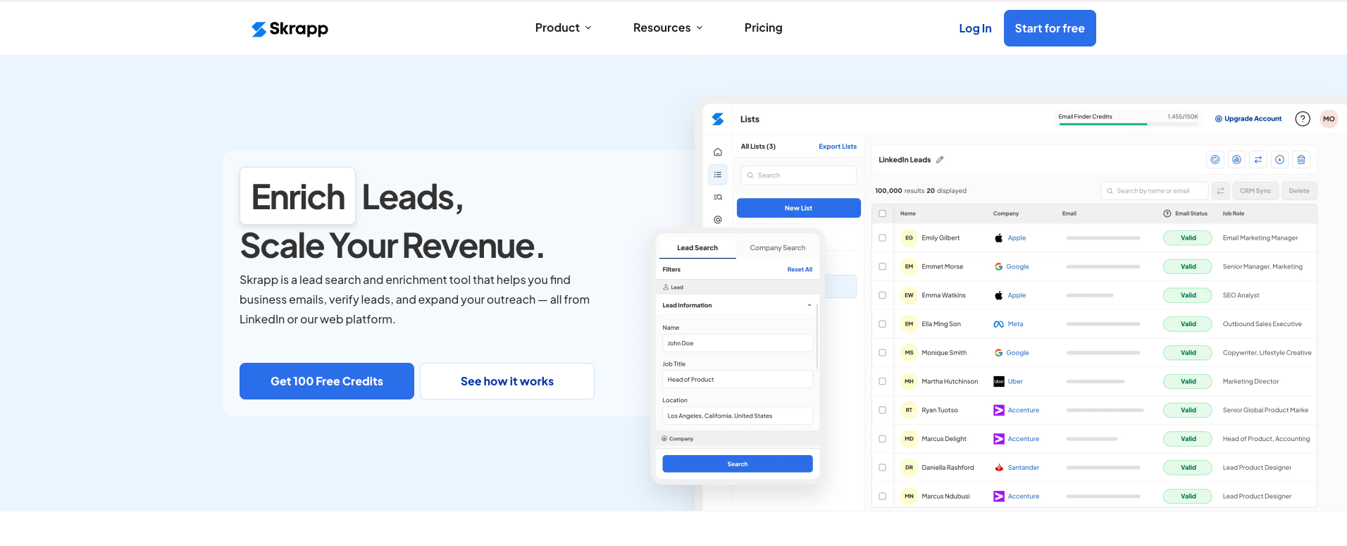 Skrapp.io provides basic email finding capabilities at budget-friendly pricing, making it attractive for startups and freelancers.